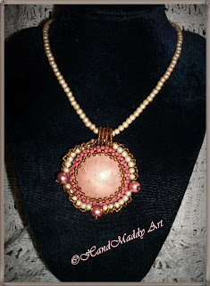 colier din perle si cabochon din lut polimeric realizat in tehnica broderie cu margele
